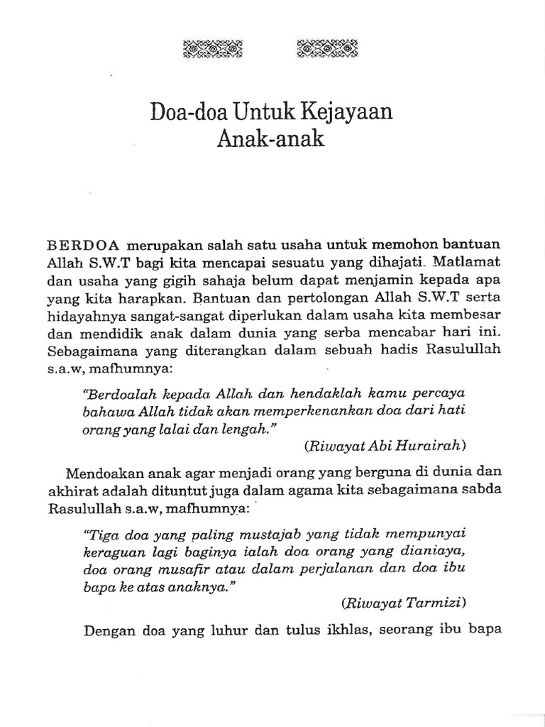 Supaya rezeki kita murah dipermudahkan urusan harian kita. Doa untuk melembutkan hati anak yang degil. Sebagai ibu bapa kita digalakan supaya berdoa untuk kejayaan anak-anak.
